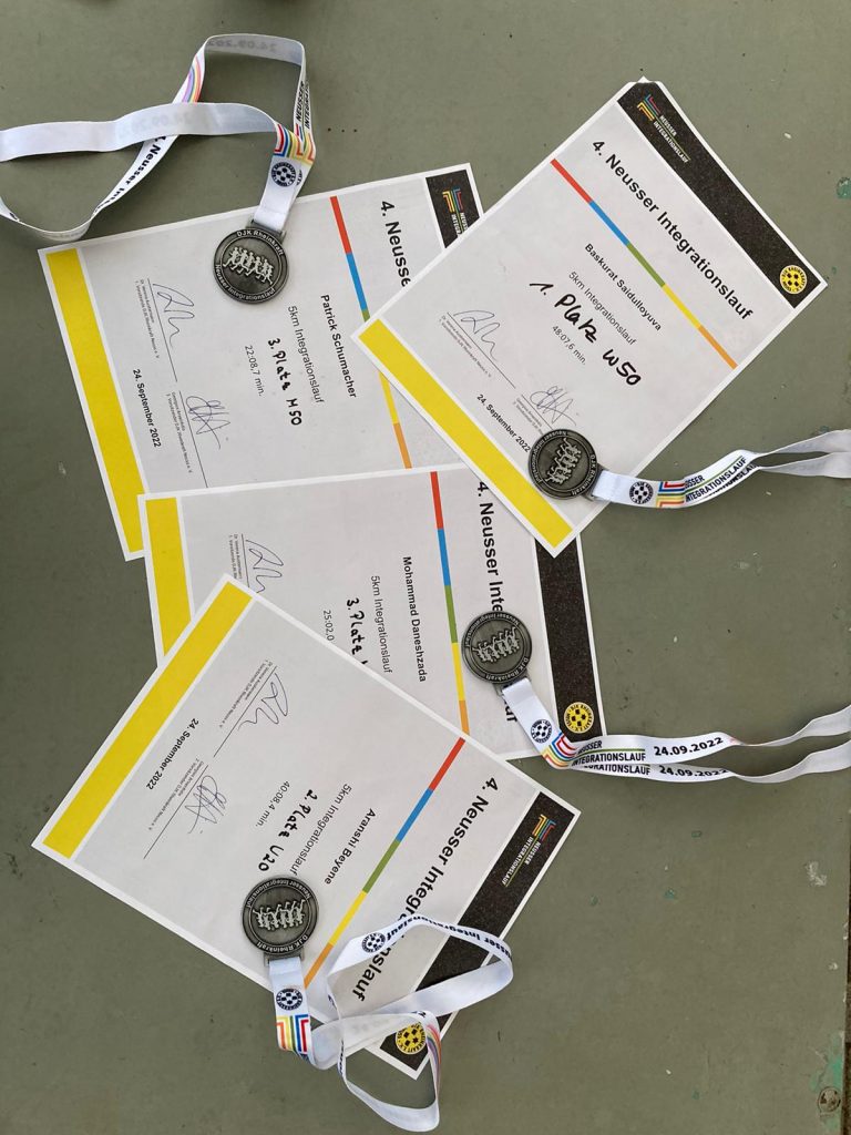 Zum vierten Male fand am 24. September auf der Ludwig-Wolker-Anlage der DJK Rheinkraft e.V. Neuss der Neusser Integrationslauf statt. Inklusion und Integration können nirgends so schnell und einfach gelebt und gefördert werden, wie durch den Sport. Und so trafen sich auch in diesem Jahr Menschen verschiedener Herkunft, Hautfarbe, Religion und Einschränkungen, um gemeinsam Sport zu treiben. Neben Kinder und Bambiniläufen bildete der 5km-Integrationslauf den Höhepunkt der Veranstaltung. Mit 25 Teilnehmerinnen und Teilnehmern aus 10 verschiedenen Ländern und 3 verschiedenen Kontinenten, nahm auch „Kompass D“ an der Veranstaltung teil. Ziel der Teilnehmer, deren Alter zwischen 16 und 64 Jahren lag, war zwar nicht der Sieg – dennoch konnte sich das Team über vier Medaillen freuen. Sogar ein erster Platz in der Klasse „weiblich, über 50“ wurde erreicht.