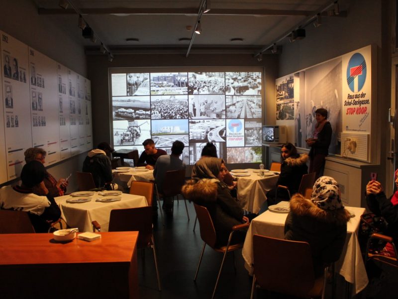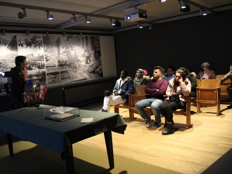 Es ist eine spannende Zeitreise durch die Geschichte des nordrhein-westfälischen Landtags, auf die sich einige „Kompass D“ Teilnehmer*innen begeben. Im Haus der Parlamentsgeschichte am Horionplatz in Düsseldorf, in unmittelbarer Nähe zum Landtag, können die Lernenden hautnah unmd direkt erleben, wie es damals war, als Abgeordnete/r an der konstituierenden Sitzung des Landtags im Düsseldorfer Opernhaus teilzunehmen, welche Schwierigkeiten es im Saal der Henkelwerke mit dem Platangebot gab, oder was in der Kantine des Ständehauses neben Essen und Trinken noch veranstaltet wurde. Eine kurzweilige Zeitreise, die im ehemaligen Sitzungssaal des Landeskabinetts endet.