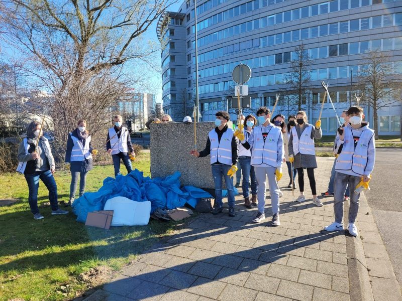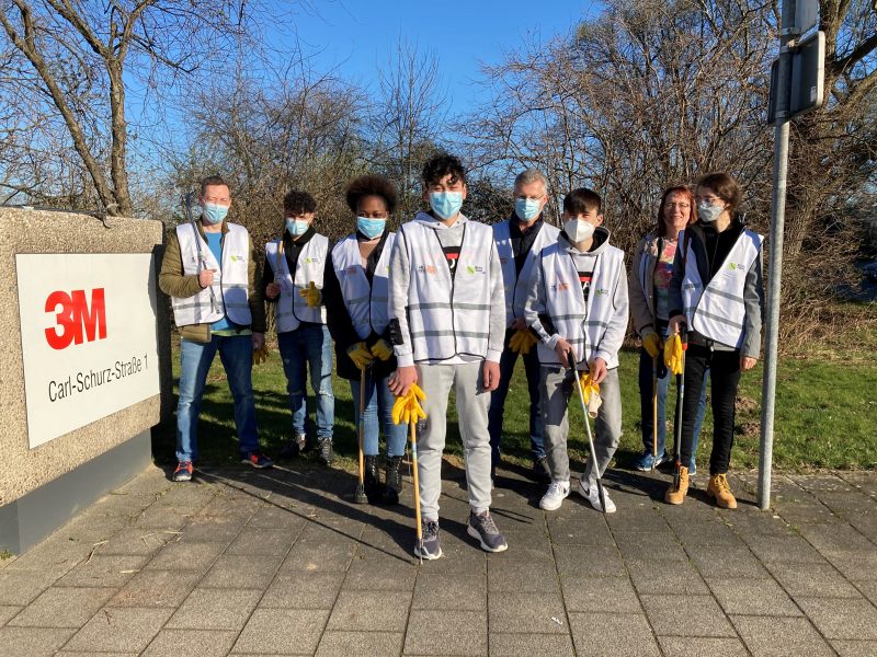 18. März 2022, Carl-Schurz-Straße 1, Punkt 15.00 Uhr – es ist „Cleanup Day“ bei der Firma 3M in Neuss. Und mit dabei fünf „Kompass D“ Teilnehmer*innen mit ihren 3M-Lesementor*innen. Das Ziel: die Grünanlage rund um den Firmensitz „müllfrei“ zu machen. Zeit: 90 Minuten. Die freiwilligen „Müllarbeiter“ staunten nicht schlecht, was sich da in den Gebüschen, auf den Rasenflächen aber auch den Rad- und Gehwegen des Areals alles fand. Zwei Autobatterien, mehrere Radkappen, ein zerstörter Kindersitz, Holz und Unmengen an Umverpackungen. Dazu etliche Schnaps-, Bier- und Getränkeflaschen – oftmals achtlos aus den Autos geworfen. Ein erfolgreicher Nachmittag für alle Beteiligten – traurig jedoch, dass ein „Cleanup Day“ überhaupt notwendig ist.