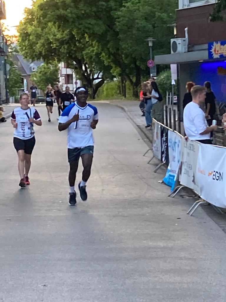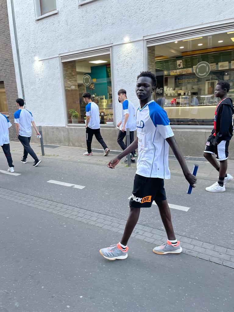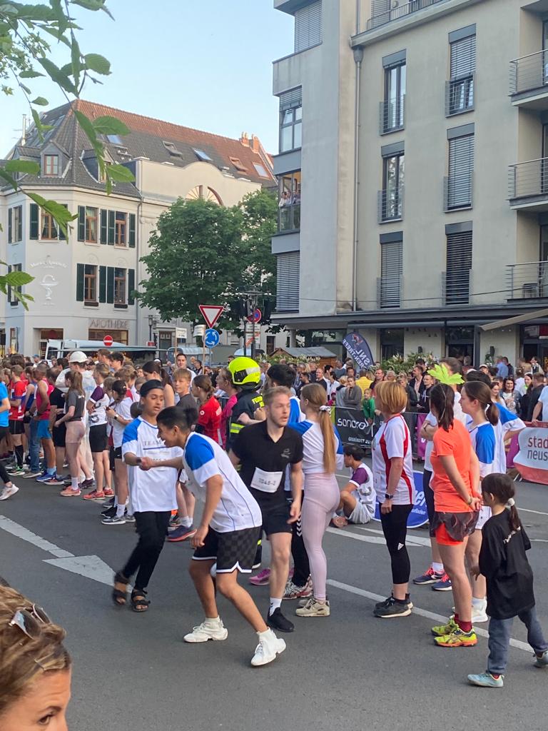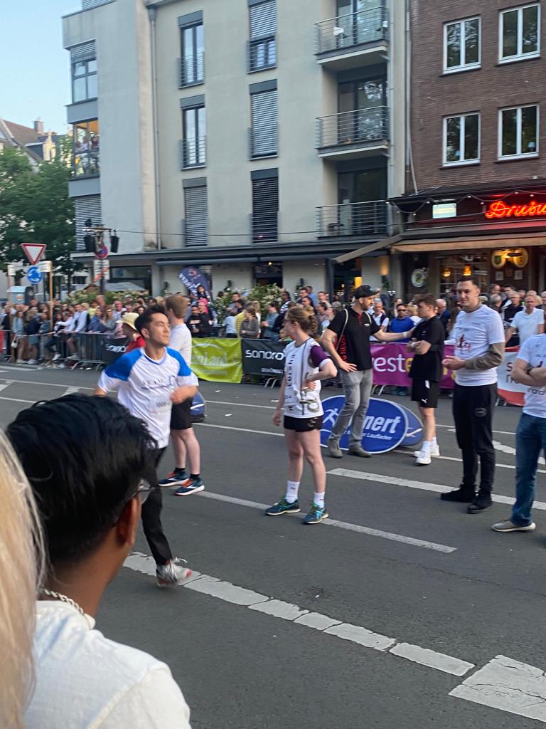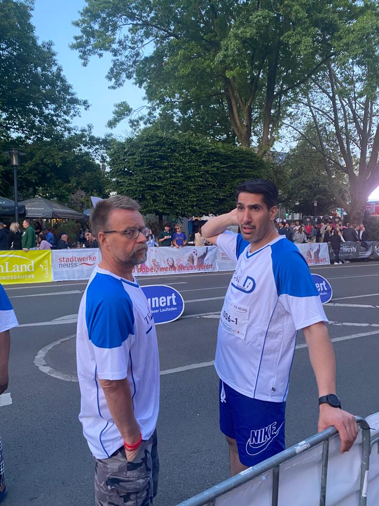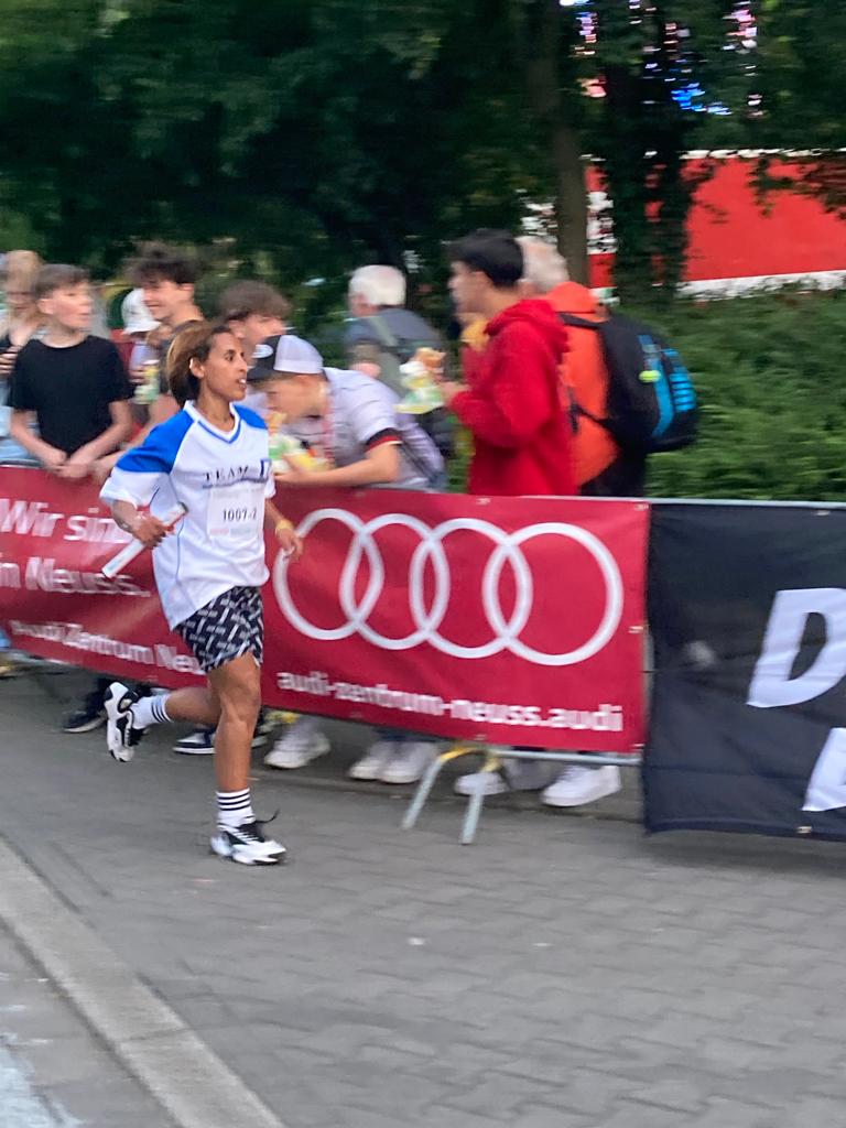 Strahlender Sonnenschen, 25° Celsius und mehr als 15.000 Zuschauer bildeten die stimmungsvolle Kulisse für den 39. Neusser Sommernachtslauf der TG Neuss am 03. Juni. Fast 3.700 Läuferinnen und Läufer waren für die verschiedenen Laufwettbewerbe gemeldet, deren Höhepunkt, wie in jedem Jahr, der Staffelwettbewerb am Ende der Veranstaltung war. Mit dabei auch fünfzehn Läuferinnen und Läufer vom Team „Kompass D“. Vier Staffeln aus Dormagen, Neuss und Norf, davon eine komplette Damenstaffel vom Theodor-Schwann-Kolleg, trafen sich an der VHS Neuss um von dort zum Start am Drusushof zu gehen. Punkt 21.10 fiel der Startschuss. Alle vier Teams erreichten das Ziel. Den krönenden Abschluss machte das Damenteam aus Norf. Mit mehr als 27 Minuten kam es zwar als letztes Team ins Ziel, wurde aber, begleitet von den anderen Teamstartern, von den ausharrenden Zuschauern frenetisch gefeiert. Dank „Kompass D“ einer der längsten dauernden Neusser Sommernachtsläufe – ganz im Zeichen des Teamgeistes. „Kompass D“ wirkt – seit 2016.