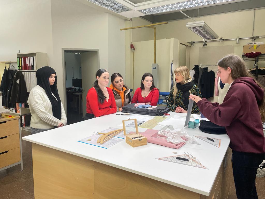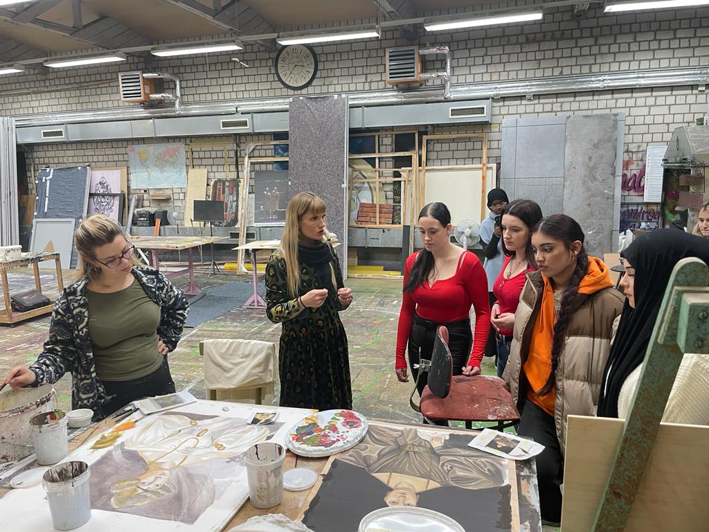 Zwei Mal waren die Lernenden der „Kompass D“ Standorte Grevenbroich und Neuss zu Besuch in den Werkstätten des Rheinischen Landestheaters. Zusammen mit den Theaterpädgoginnen Katja König und Lina Addi bekamen die jungen Leute einen Einblick hinter die Kulissen des Theaters. Tischlerei, Malsaal und Schneiderei, aber auch die Proberäume und der reichhaltige Kostüm- und Requisitenfundus weckten Staunen und Interesse bei den Lernenden. Das Theater bietet jungen Menschen die Möglichkeit, sowohl als Tischler*in, Maler*in oder Schneider*in, aber auch als Schlosser*in, Maskenbildner*in und Veranstaltungstechniker*in eine Ausbildung zu absolvieren.