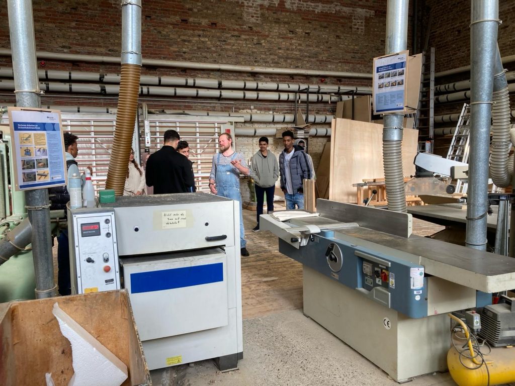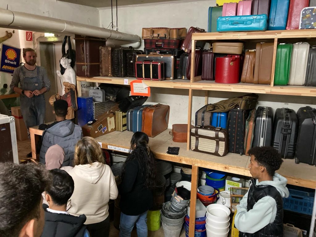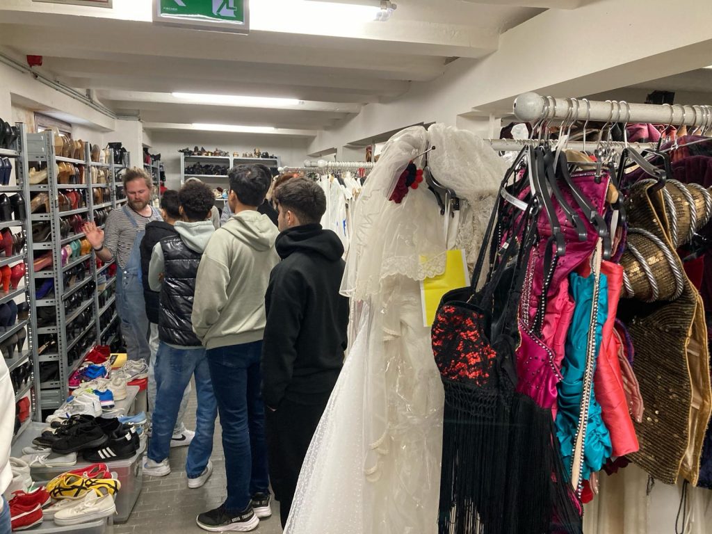 Mittwoch den 28. Februar besuchten Teilnehmende der „Kompass D“ Gruppen aus Dormagen und vom Theodor-Schwann Kolleg die Werkstätten des Rheinsche Landestheters auf der Wolberostraße. Unter der Leitung des Theaterpädagogen Felix Herfs, konnten die jungen Menschen einen Blick hinter die Bretter, die die Welt bedeuten, werfen. Probebühne, Kostüm-, Theater- und Requisitenfundus beeindruckten die Schülerinnen und Schüler sehr. Mehr noch interessierte sie, dass es auch die unterschiedlichsten Ausbildungsmöglichkeiten in den theatereigenen Werkstätte gibt. Ob als Schreiner`*in, Bühnenmaler*in oder auch Maskenbildner*in – Theater muss nicht immer brotlose Kunst sein.