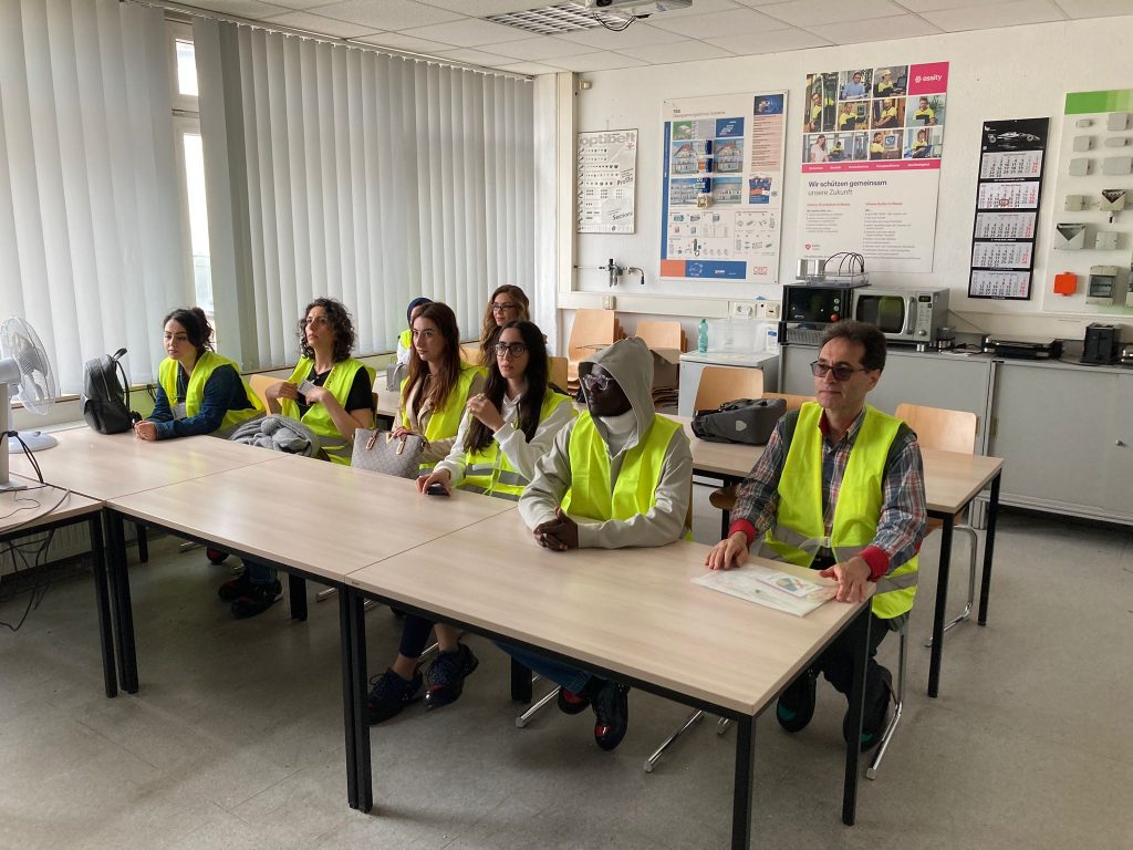 HR-Managerin Raphaela Sieben und Ausbildungsleiter Jörg Schmitz nahmen sich am Mittwoch, 22. Mai, eineinhalb Stunden Zeit, um die Lernenden des „Kompass D“ Standortes am Theodor-Schwann-Kolleg, über die Arbeit und Ausbildungsmöglichkeiten bei Essity Neuss zu informieren und sie anschließend durch das Werk zu führen. Ob als Mechatroniker*in, Elektroniker*in für Betriebstechnik, Papiertechnolog*in oder als Maschinen- und Anlagenführer*in – wer eine Ausbildung bei Essity macht, erhält neben der guten Ausbildungsvergütung bereits in der Ausbildung u.a. Urlaubsgeld und ein 13. Monatsgehalt. Dazu werden die Auszubildenden nach erfolgreicher Ausbildung für mindestens ein Jahr im Betrieb übernommen.