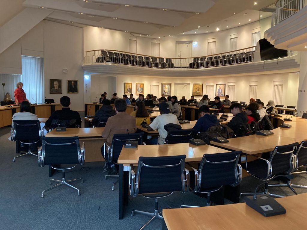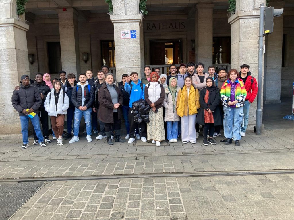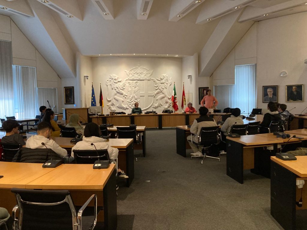Nach dem gemeinsamen Foto vor dem Rathaus, saßen die Teilnehmenden nach Standorten geordnet in den Reihen des Ratssaals.