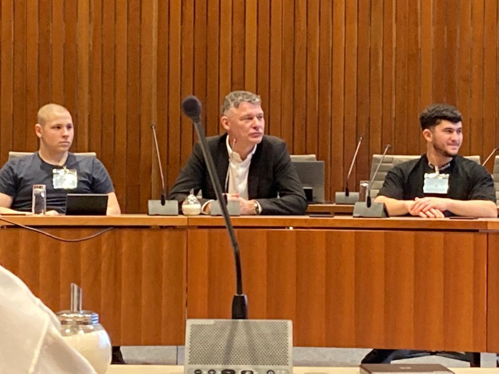 Nach durchlaufenem Securitycheck wurde den Mitgereisten dann von Herrn Georg Schwedt, Mitarbeiter des Besucherdienstes des Landtags, in einfacher Sprache während eines rund 30 minütigen Vortrags, Aufgabe und Funktion des Landtags und der dort arbeitenden Abgeordneten erläutert. Nach einem Besuch des Plenarsaals hatten die Teilnehmenden dann die Möglichkeit, dem Neusser CDU-Landtagsabgeordneten Herrn Dr. Jörg Geerlings kennenzulernen und ihm Fragen zu stellen.
