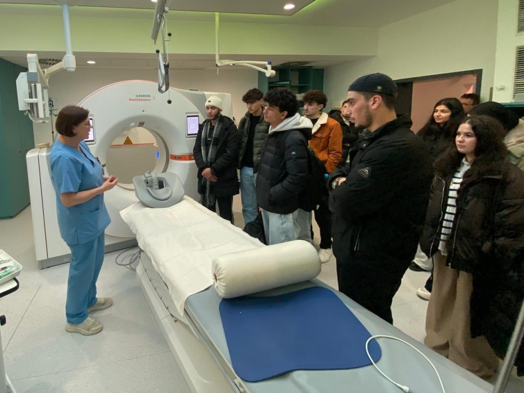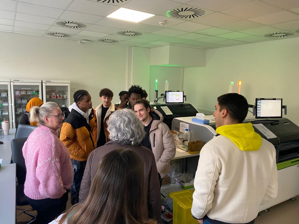 Eine Hürde, die für viele der knapp 30 jungen Menschen, die im Rahmen des „Kompass D“ Unternehmertages das Lukaskrankenhaus besuchten, noch zu nehmen ist. Dennoch zeigten die Teilnehmenden reges Interesse am Rundgang durch das Krankenhaus der Rheinland Klinikum Neuss GmbH, auf dem im Labor, der Chest Pain Unit, der Station M6 und der Radiologie interessante Einblicke in die Arbeit des Krankenhauses gegeben wurden.