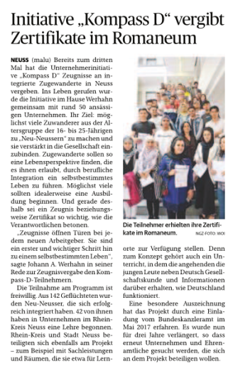 Jan Wucherpfennig2021-11-19T10:44:16+01:0048 Lehrtstellen bis jetzt über „Kompass D“ vermittelt, aus: NGZ, 19.09.2019